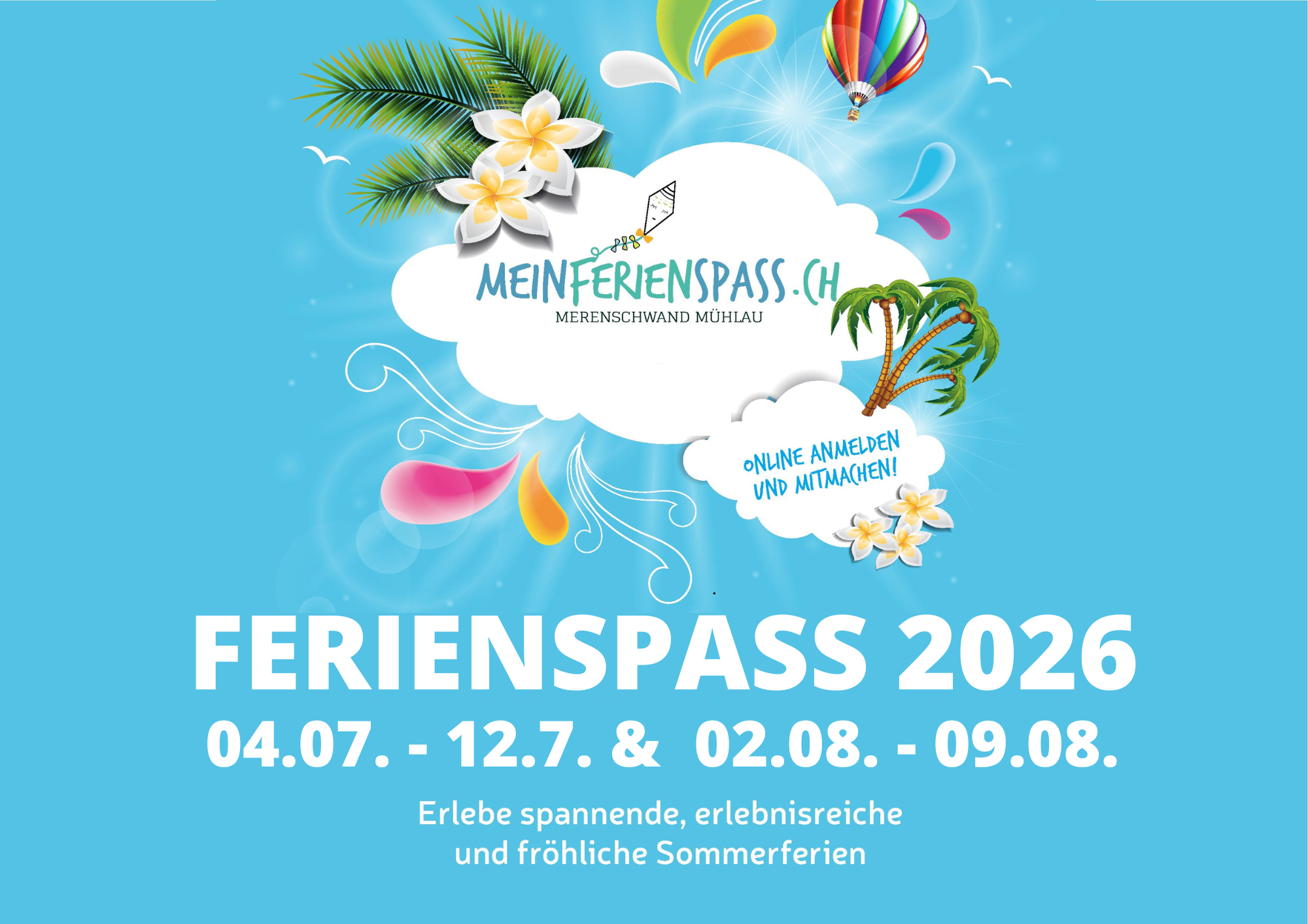 Startseite Aktuelles Ferienspass 2026 Ferienspass 2026 Im Mai geht es los. Wir sind in der Planung und freuen uns wieder auf tolle Angebote. 03. Januar 2026 Kontakt FerienSpass Merenschwand MühlauElternverein Merenschwand5634 Merenschwand077 496 10 96 Weitere News Fotos Ferienspass 2025 21. September 2024 Begleitpersonen 02. April 2023 Inhalt